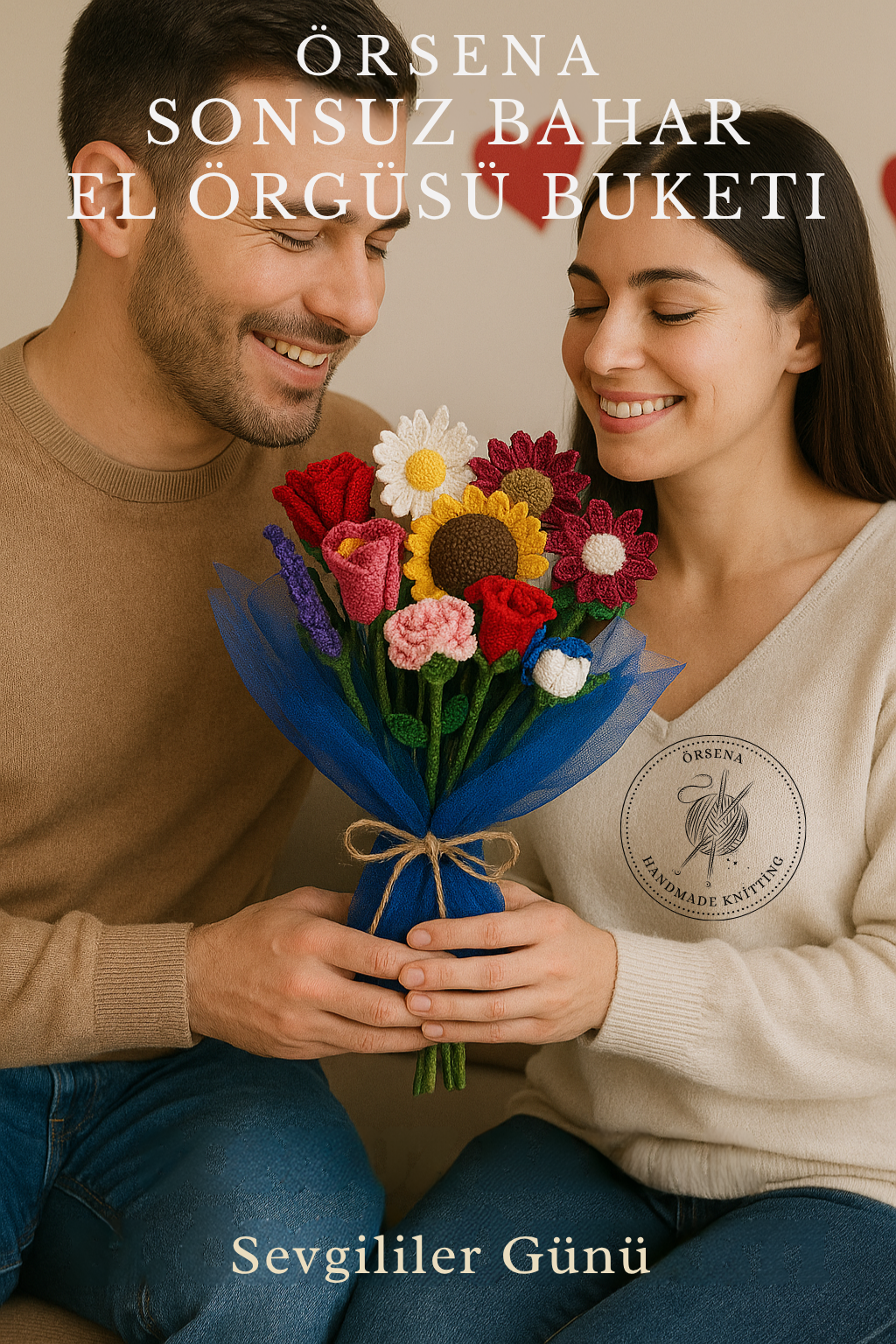 🧶 %100 el emeğiyle üretilmiştir. Her çiçek tek tek elde örülür, her detay özenle hazırlanır.